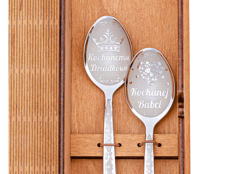 Dwie grawerowane łyżeczki w eleganckim pudełku: prezent z klasą dla Babci i Dziadka.